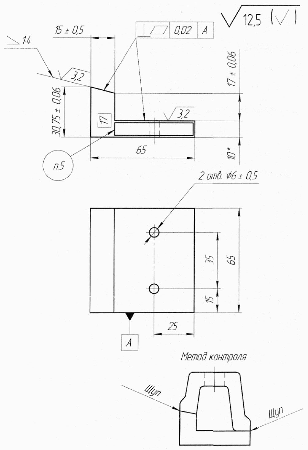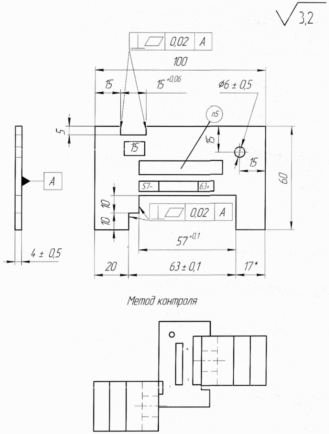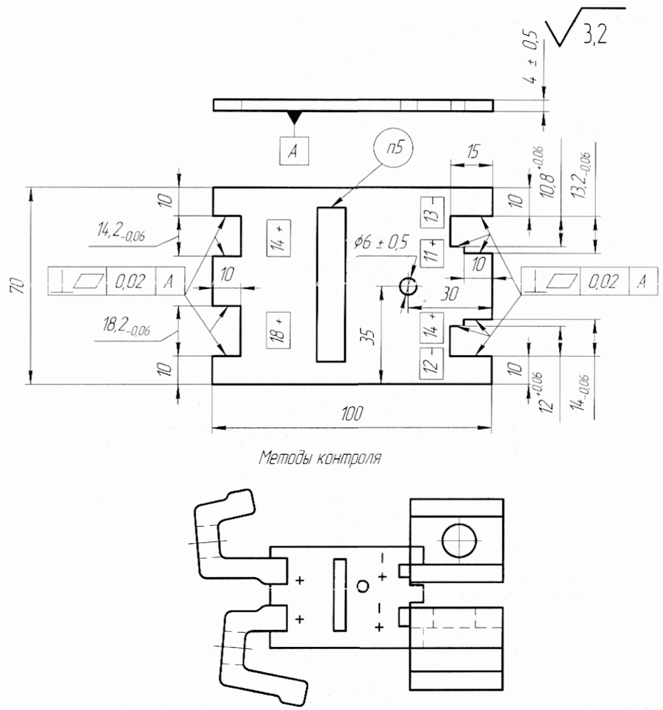 Рисунок 3 - Шаблон для измерения толщины полок клеммы