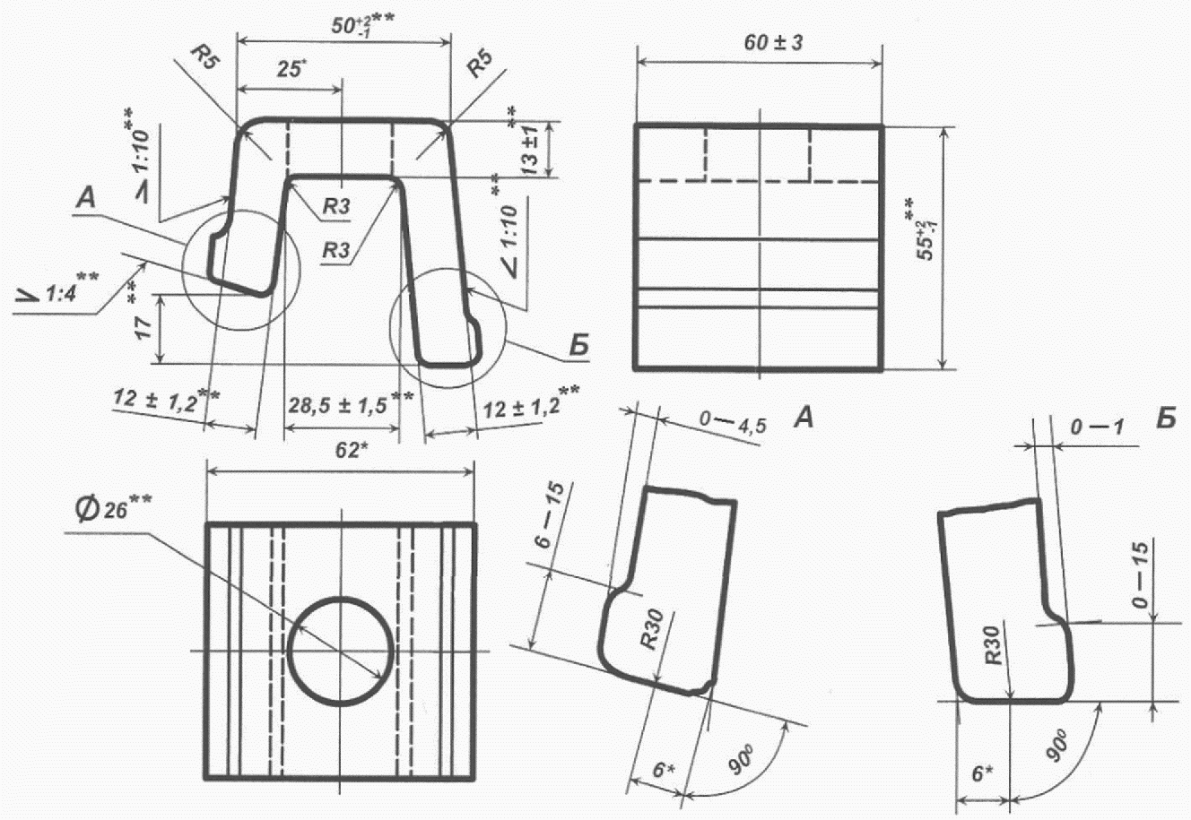 4 Острые грани притупить в виде фаски 1,0 x 45°.