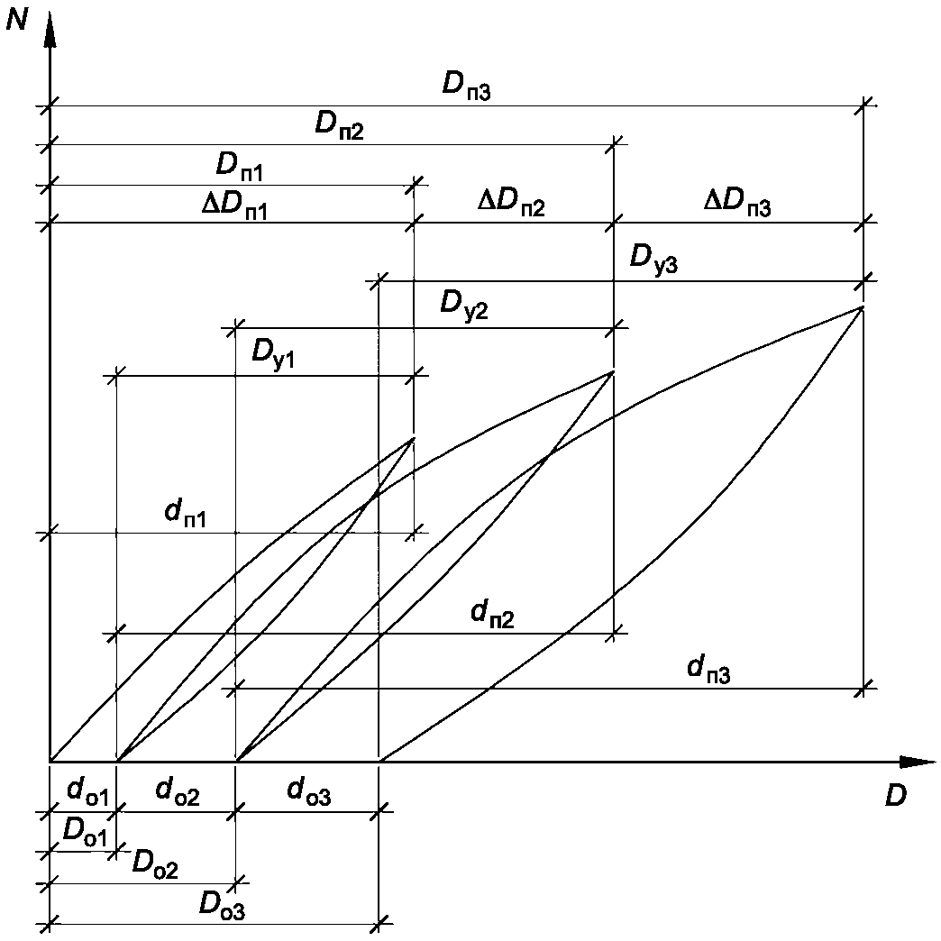 3.7 остаточная деформация соединения: Сохранившаяся величина взаимного смещения элементов соединения при одном или нескольких циклах приложения нагрузки на соединение после полного ее снятия.