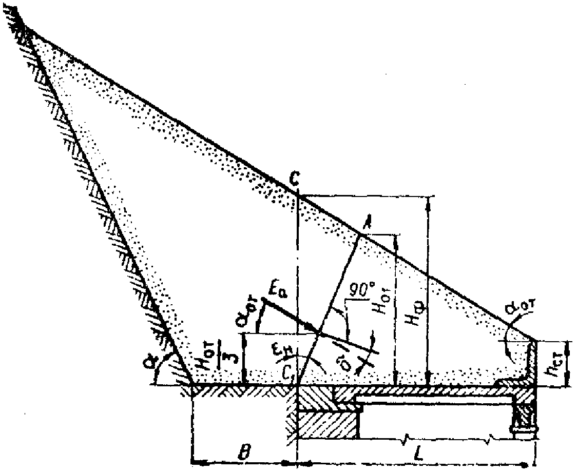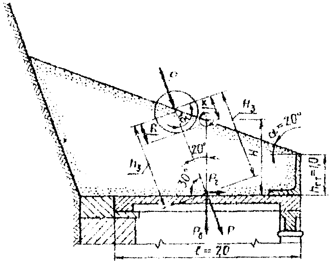 и f = 0,3 величина сдвигающей силы, действующей в плоскости поверхности амортизирующей отсыпки, направленной в сторону движения лавины и вызванной силами трения, определяется
