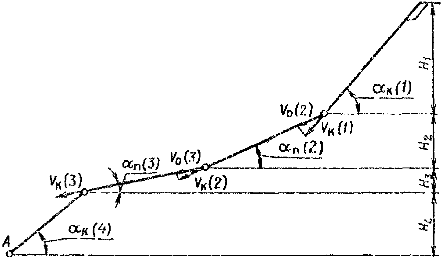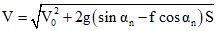 Определение скорости производится последовательно по участкам методом подбора, до места остановки лавины (V = 0). Расчет ведется по
