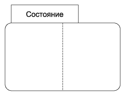 3.2 блок состояния (state block): Составляющие графического представления состояния, обеспечивающие визуальное различие имени состояния, его внутреннего поведения, внутренних переходов, дочерних состояний и переходов (если они есть).