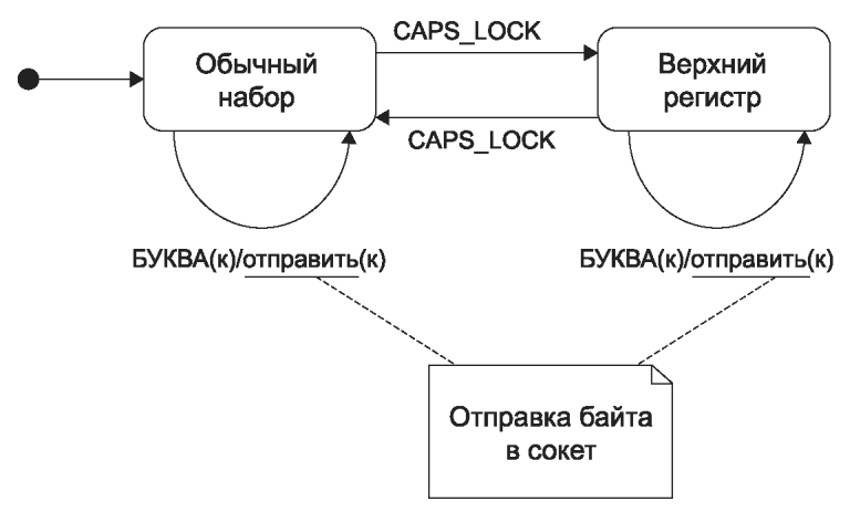 Примечание - Внутренние переходы обозначаются в теле состояния.