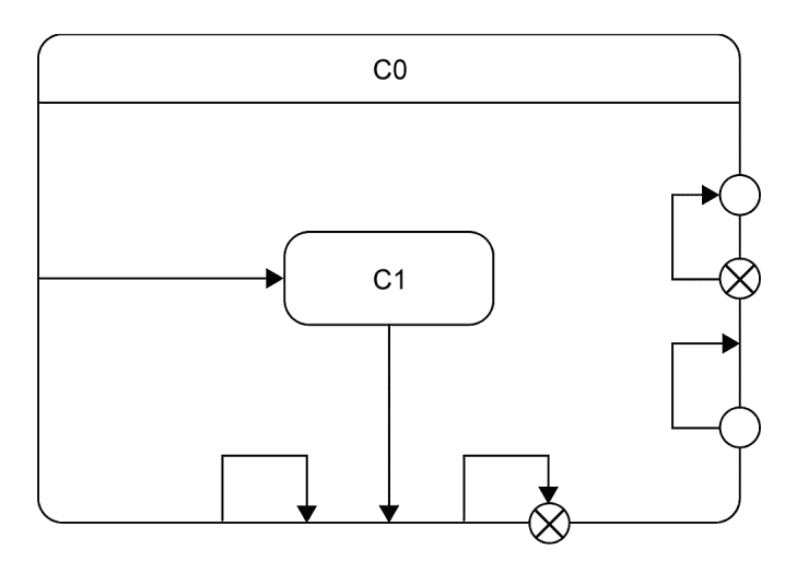 Рисунок 45 представляет пример составного состояния с дочерним составным состоянием, содержащим ортогональные области.