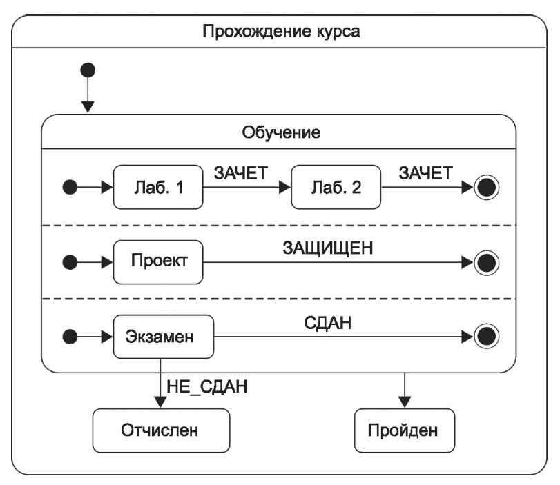 Примечание - Ортогональные области моделируют независимое ("параллельное") исполнение составляющих машины состояний.