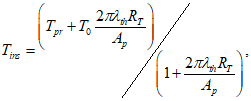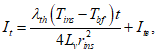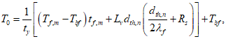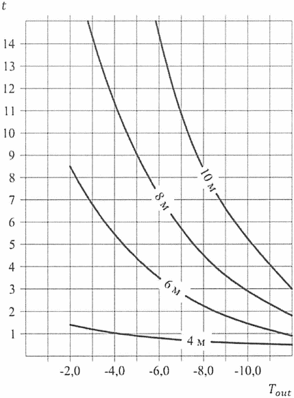 Tin - средняя по длине колонки температура рабочего тела, °C, принимаемая для парожидкостных термосифонов равной средней за период его работы отрицательной температуре наружного воздуха (Tair,t) плюс 1 °C, для жидкостных термосифонов - плюс 4 °C, для воздушных установок - плюс 3 °C, для рассольных установок - равной Tp + 1 °C (Tp - температура рассола в подающей магистрали);