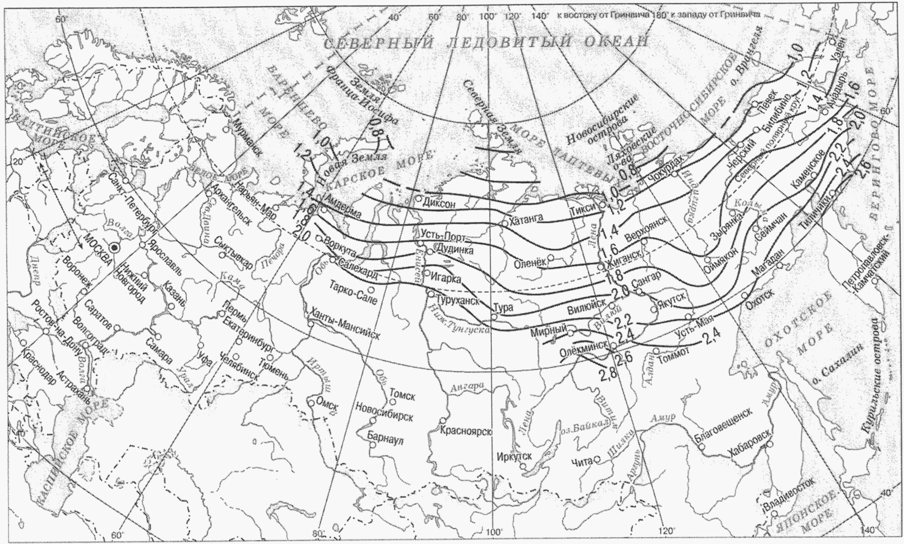 Сложный | Тундра и лесотундра, местность плохо дренирована, сложена льдистыми суглинками и супесями, мерзлота сливающаяся | 0,01 - 0,10 | II |