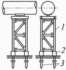 С.3 При специальном обосновании подземный или наземный способ устройства трубопроводов допускается: на сваях или с вывешиванием (в качестве страховочного мероприятия) трубопроводов на тросах, прикрепляемых к неподвижным опорным системам, расположенным за зоной возможного оттаивания грунтов вокруг трубопроводов. Трос служит для контроля осадок трубопровода и при необходимости его выравнивания.