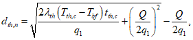 - коэффициент теплообмена между рабочим телом и внутренней поверхностью колонки, принимаемый для жидкого рабочего тела равным 116 Вт/(м