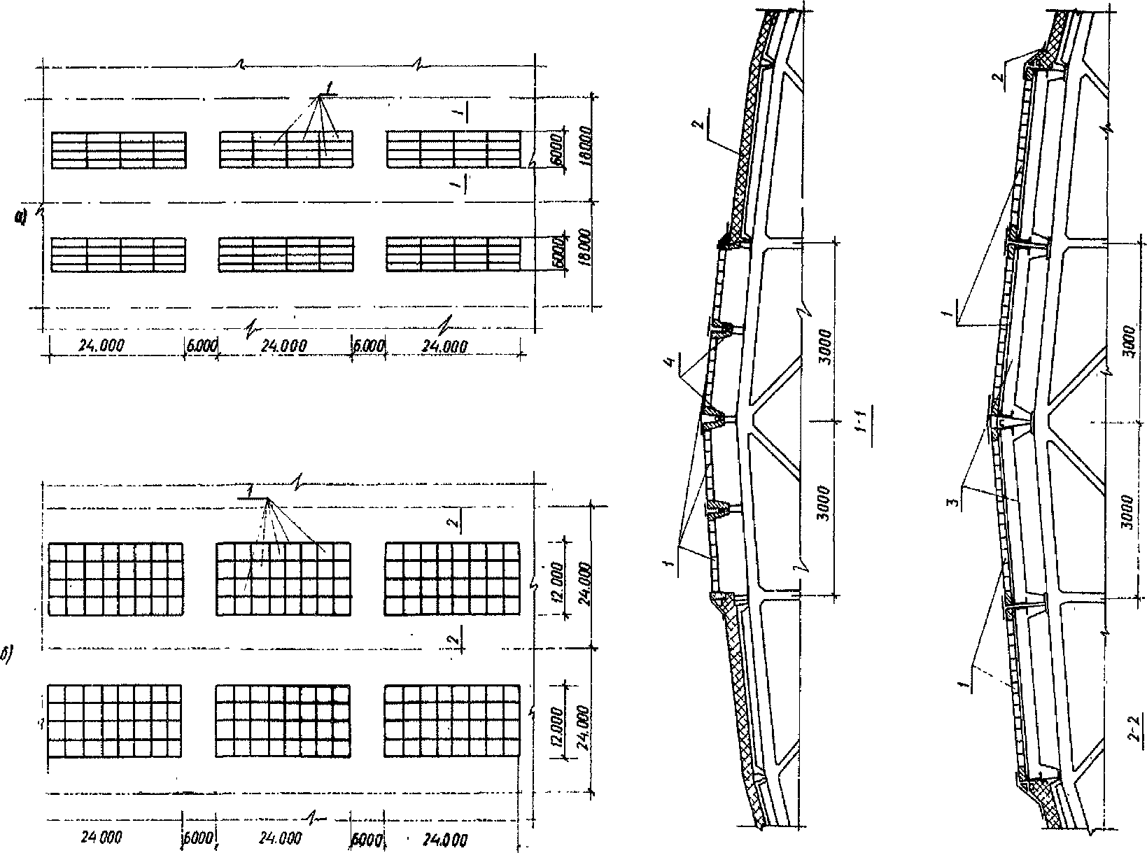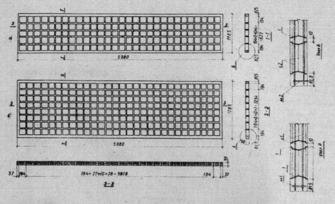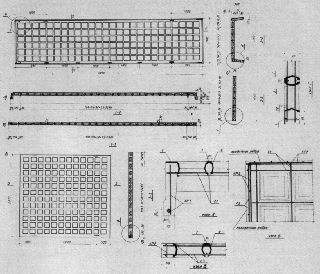а - ребристая 6,0 x 1,5 м; б - плоская 6,0 x 1,5 м;