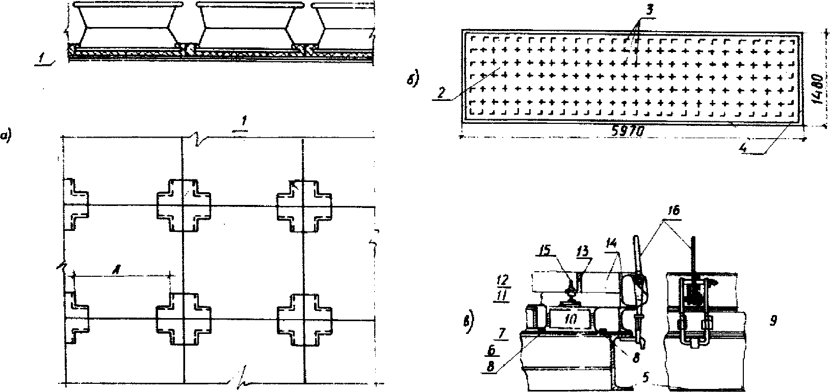в - стеновые панели; 1 - стекложелезобетонные панели;