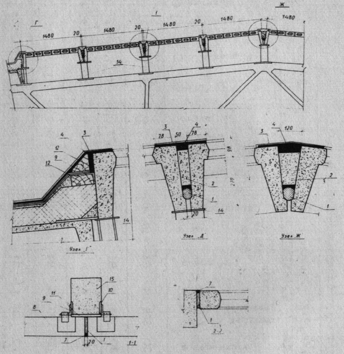 ж) наклейка стеклоткани в 2 слоя с перепуском на кровельный ковер и промазка ее гидроизоляционным материалом. Стыки между плоскими стекложелезобетонными панелями покрытия и соседними панелями заделываются аналогично за исключением