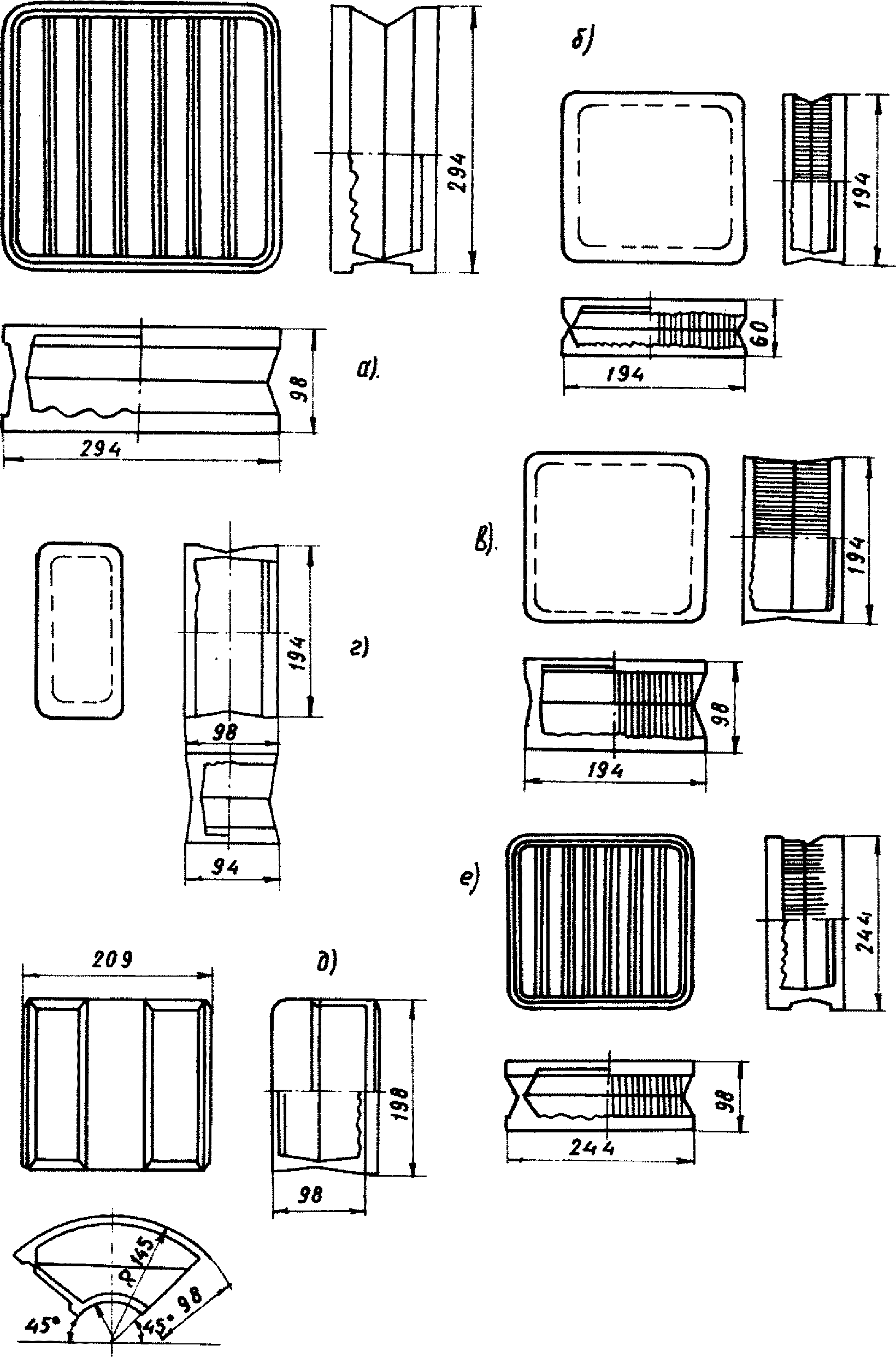г - БП 244/98; д - БУ 194/98; е - БК 244/98