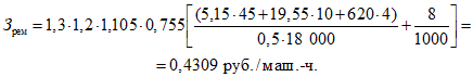 Примечание: Затраты на эксплуатацию вспомогательных машин при устройстве, разборке и перевозке 1 звена рельсовых путей составляют 12,25 руб. (компрессор ПКСД-5,25 для рыхления мерзлого грунта в зимнее время, сварочный агрегат для устройства заземления и автокран КС-1562А).