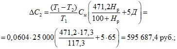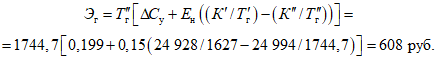 где В" - годовой объем работ, выполняемый с использованием НТ, а индекс (у) означает удельную величину себестоимости (С) и капитальных вложений (К) на соответствующую единицу измерения объема работ.