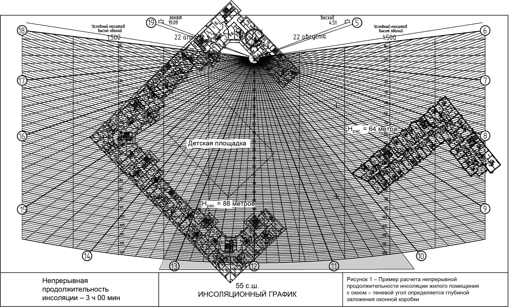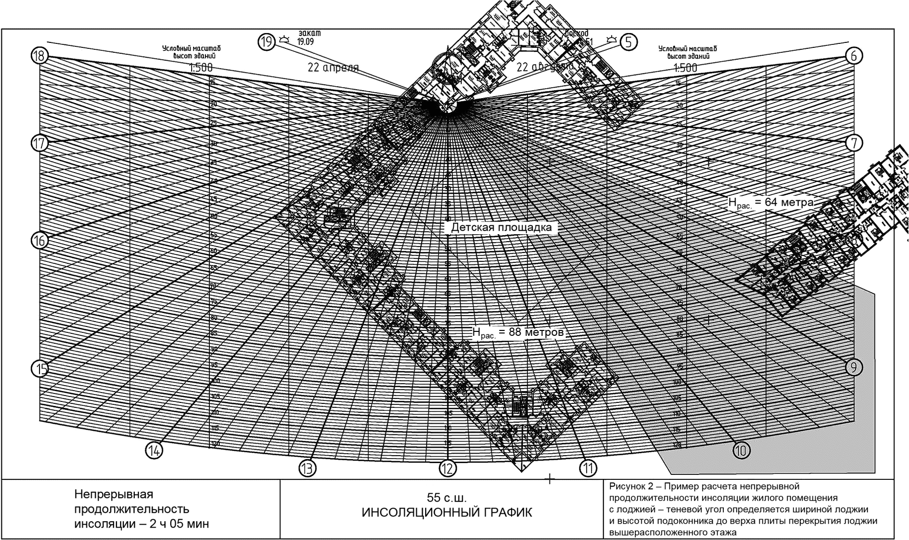 Рисунок Г.1 - Пример расчета непрерывной инсоляции