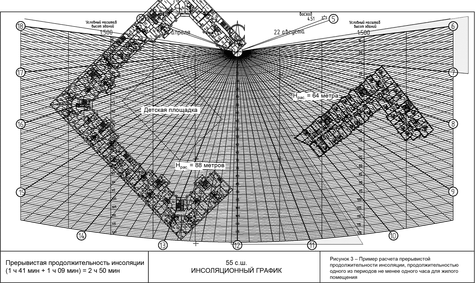 Рисунок Г.3 - Пример расчета прерывистой инсоляции,