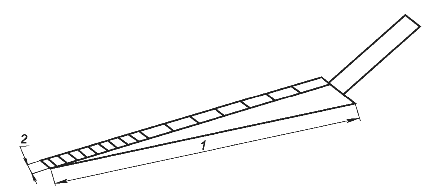 Уклон клина должен быть размечен таким образом, чтобы отображать расстояние между нижней и верхней поверхностями клина с шагом 1 мм на участке первых 10 мм от начала клина и с шагом 2,5 мм далее, с точностью не менее 0,1 мм, как показано на
