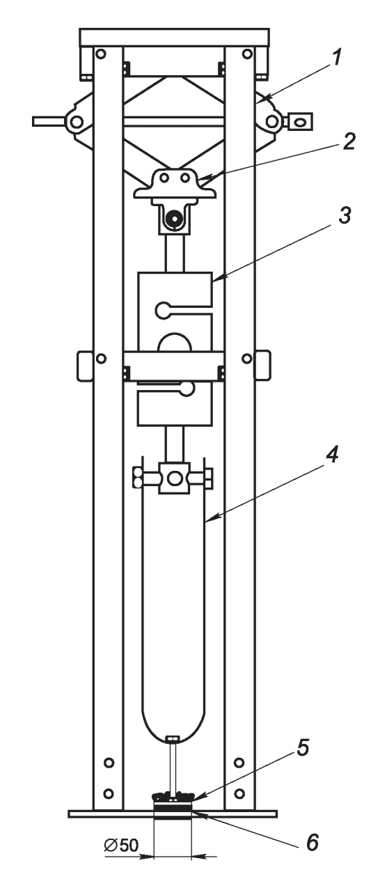 1 - рама; 2 - силовой элемент; 3 - динамометр; 4 - захват;