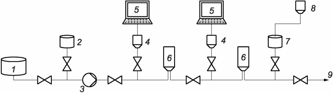 3 - насос; 4 - фильтр для газов с размером пор 0,2 мкм;