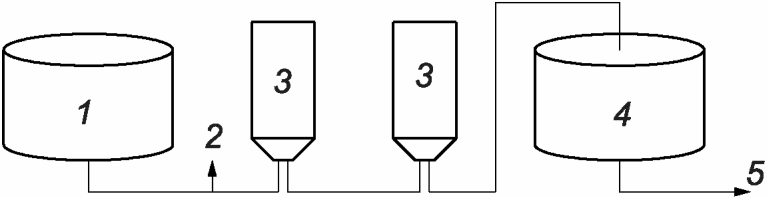 1 - продукт; 2 - смачивающая/промывающая жидкость;