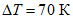 - практическое повышение температуры: 70 К;