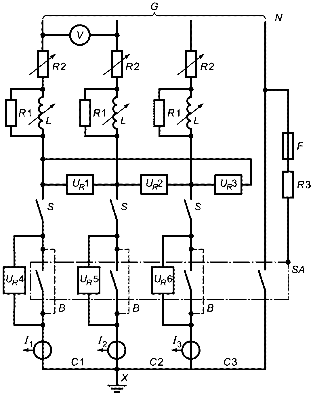чертеже 5. Затем регулирование завершается поочередным соединением во всех возможных комбинациях генератора высокой частоты с одной фазой, подключаемой последовательно, и двумя другими, соединенными параллельно. Если необходимо, осуществляется доводка для достижения в каждой комбинации заданных значений