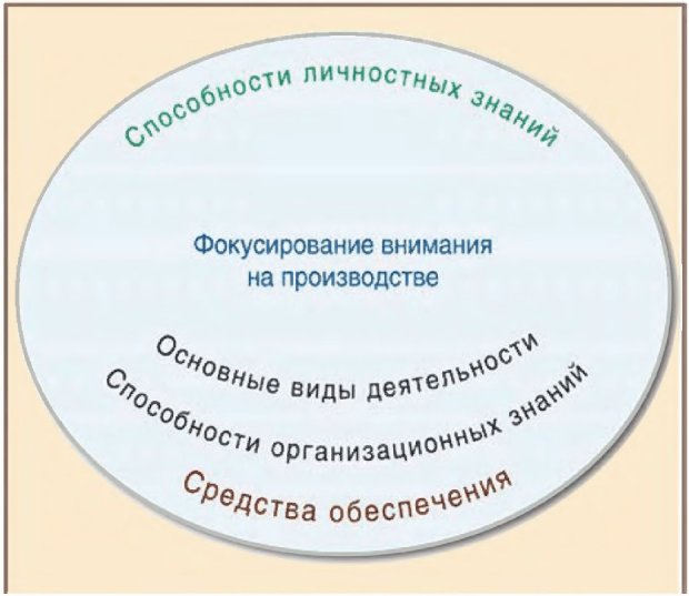1. Фокусирование внимания на производственной деятельности должно быть центром любой инициативы в области менеджмента знаний и представлять собой дополнительную значимость организации, которая может, как правило, включать разработку стратегии, инновацию продукта (услуги) и разработку, производство и доставку услуги, поддержку реализации продукции и потребителей. Эти процессы представляют собой внутренний организационный контекст, в котором создается и применяется знание о продуктах и услугах, потребителях или технологии.