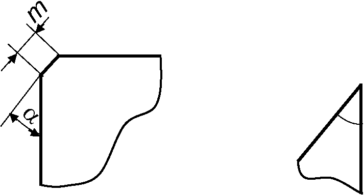 6.2.4 При отсутствии требований к углу наклона фаски на чертеже указывают только ширину фаски. В этом случае фаски снимают перпендикулярно к биссектрисе трехгранного угла между гранями.