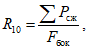 А.12 Полученные от раскола кубы, установленные на боковые грани, испытывают на сжатие. Прочность при сжатии R10 вычисляют путем деления суммы разрушающих усилий (Н) по результатам испытаний четырех кубов на площадь боковой поверхности призмы Fбок, мм2