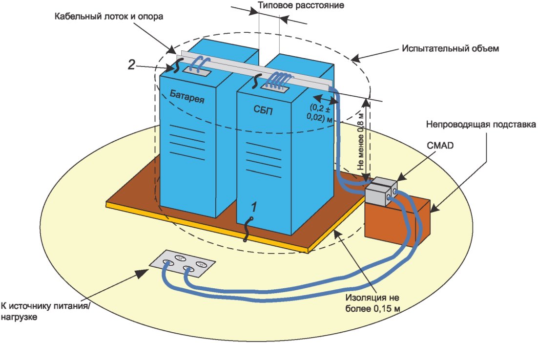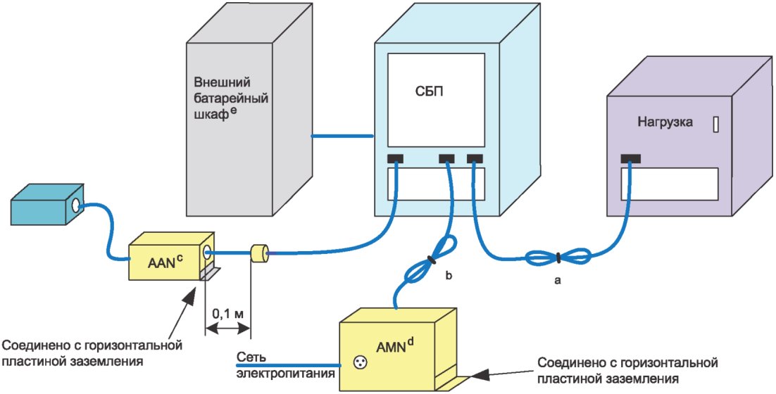 Настоящий стандарт не рассматривает явления ЭМС, создаваемые нагрузками, подключенными к СБП, или ситуации, создаваемые любыми устройствами, внешними по отношению к СБП, кроме описанных в требованиях к помехоустойчивости.