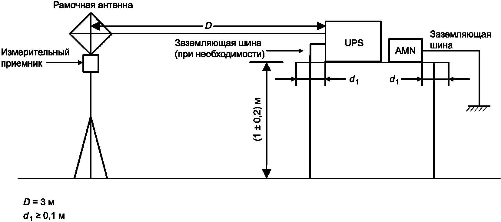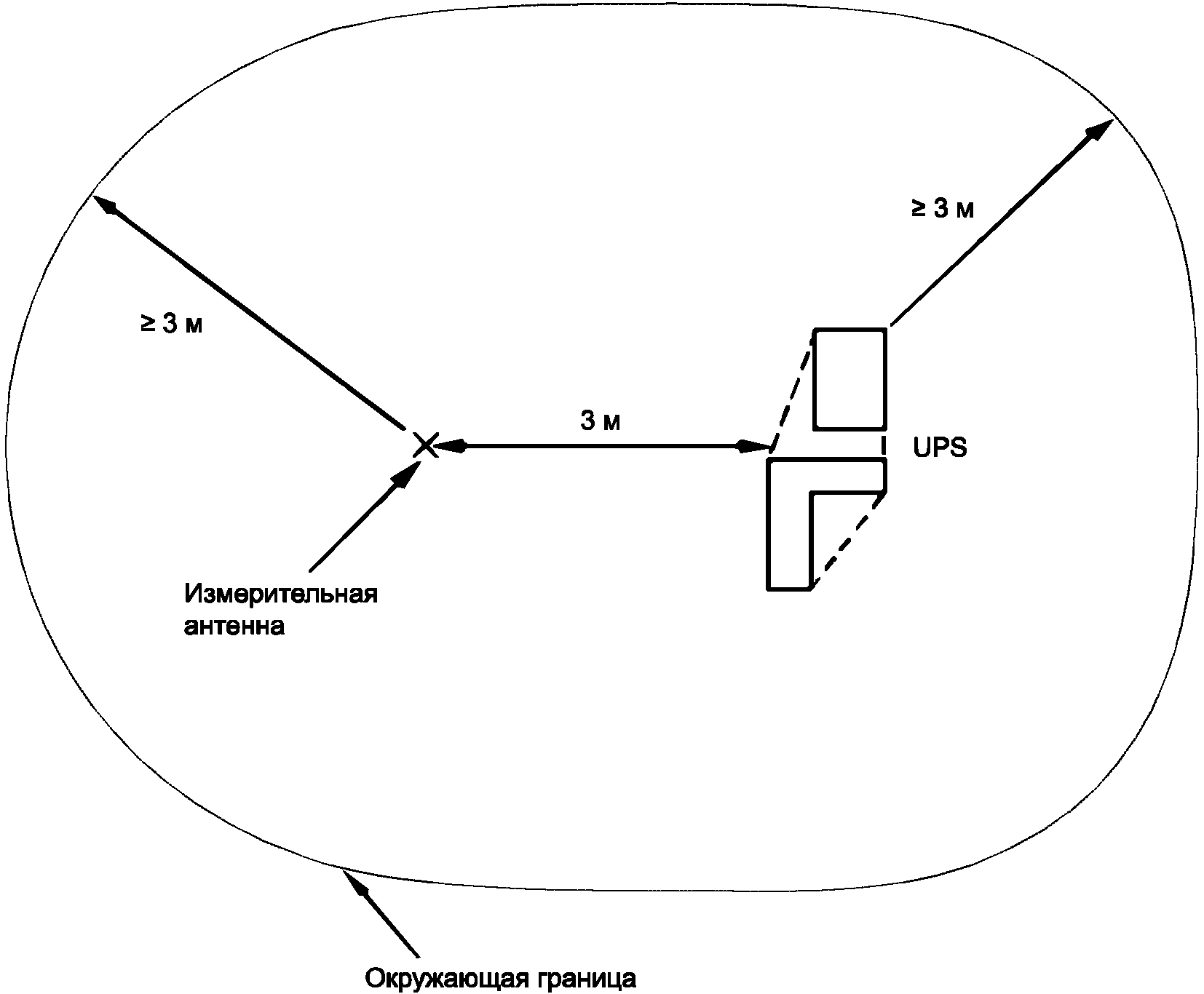 Измерения желательно проводить на границе помещения пользователя; если эта граница находится на расстоянии менее 30 м от испытуемого устройства, измерения следует проводить на расстоянии 30 м от испытуемого устройства. Количество измерений, выполняемых по азимуту, должно быть настолько большим, насколько это практически осуществимо, но следует выполнить не менее четырех измерений в ортогональных направлениях, а также измерений, выполняемых в направлении к любому существующему оборудованию, на которое может быть оказано неблагоприятное воздействие.