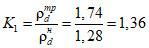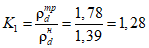 где K1 - коэффициент относительного уплотнения, определяемый отношением требуемой плотности (скелета) сухого грунта в насыпи к плотности (скелета) сухого грунта в карьере