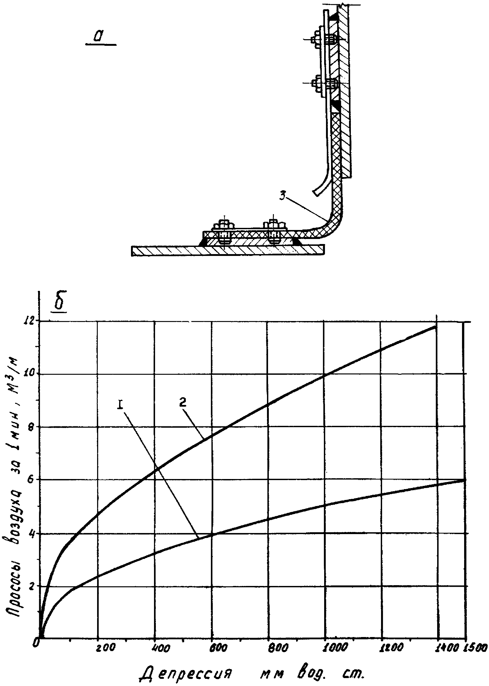 В связи с этим возникла необходимость повышения герметичности надшахтных зданий и вентиляционных каналов при высоких депрессиях, так как внешние утечки воздуха на шахтах в настоящее время велики и достигают 30 - 40% и более от производительности вентиляторов. Это приводит к тому, что проветривание в забоях не всегда отвечает предъявляемым требованиям, а производительность вентиляторов используется нерационально.