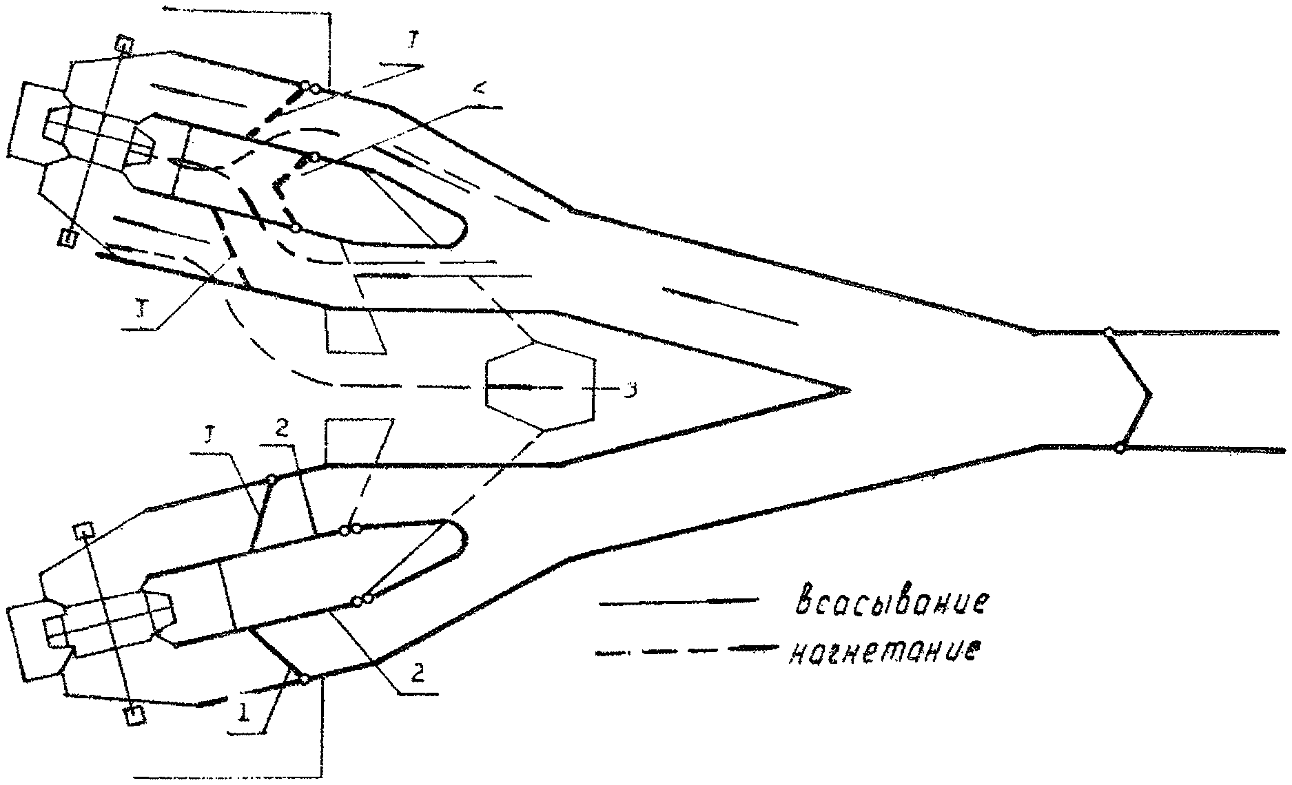 и шлюзовыми помещениями; 1 - герметический станок копра;