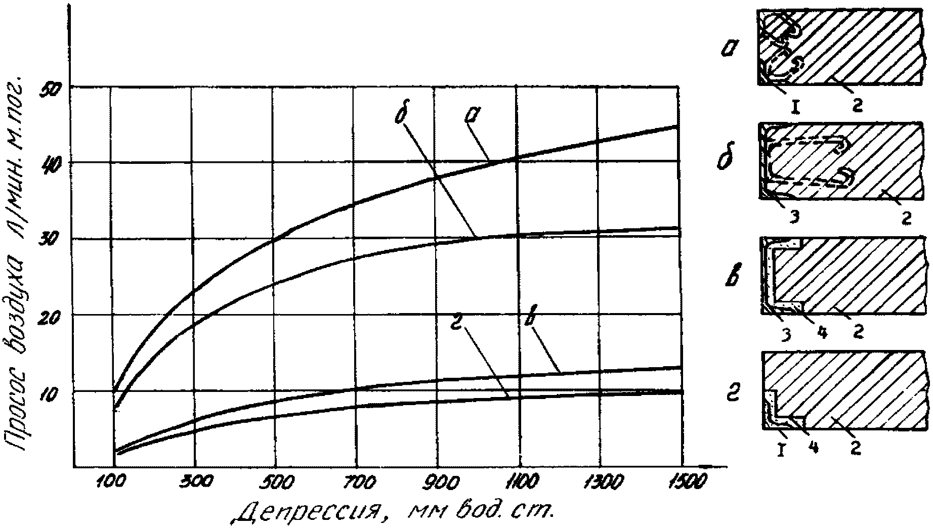 Примечание. Удельная норма прососов воздуха через элементы конструкций определена при депрессии 1000 мм вод. ст. |