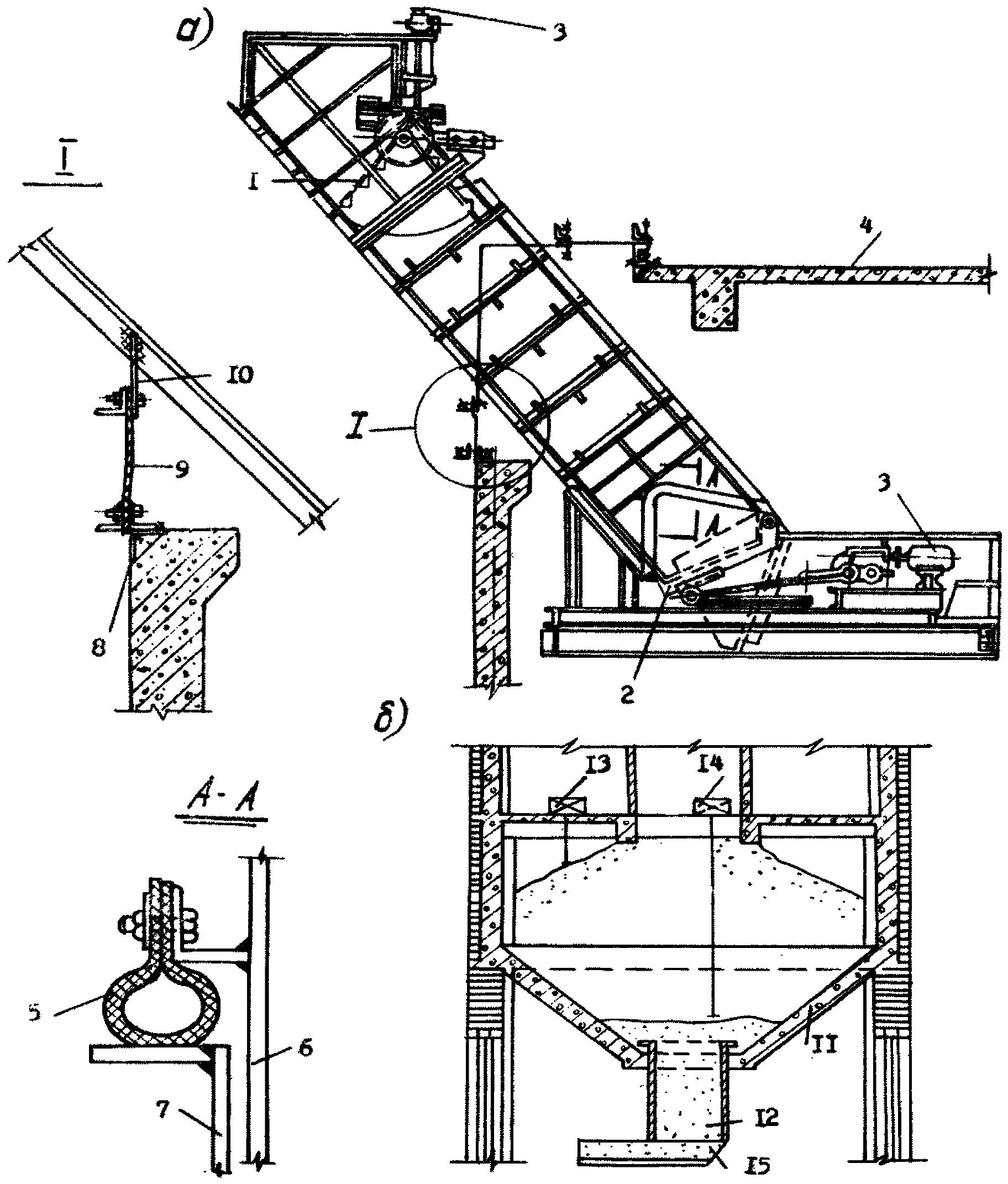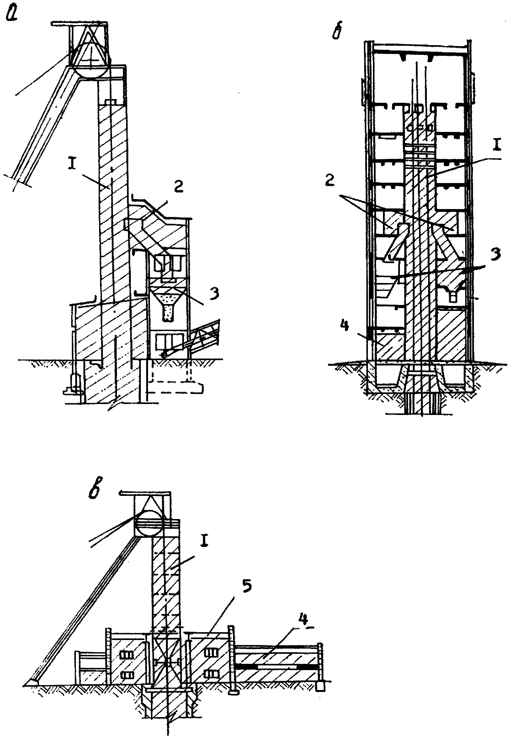 2 - помещения разгрузки скипов; 3 - бункеры для угля