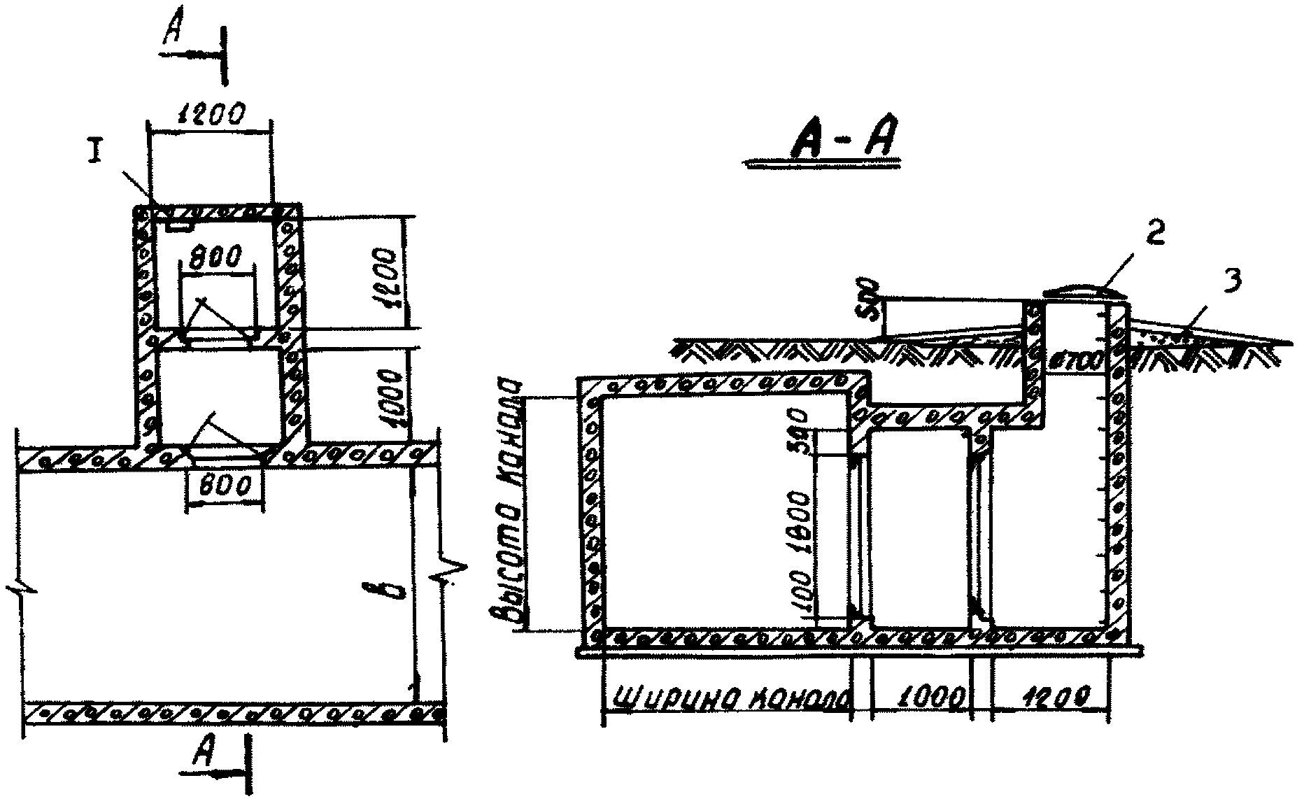 1 - копер с герметической обшивкой; 2 - железобетонное