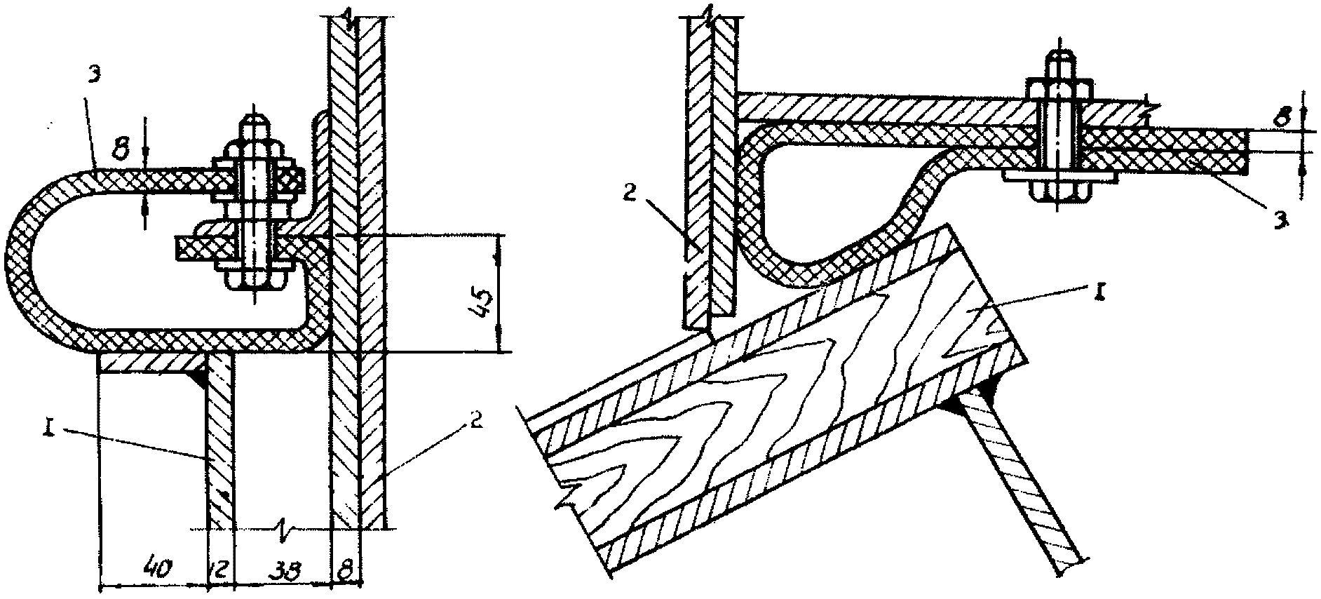 1 - прокладка из конвейерной ленты; 2 - резиновая прокладка