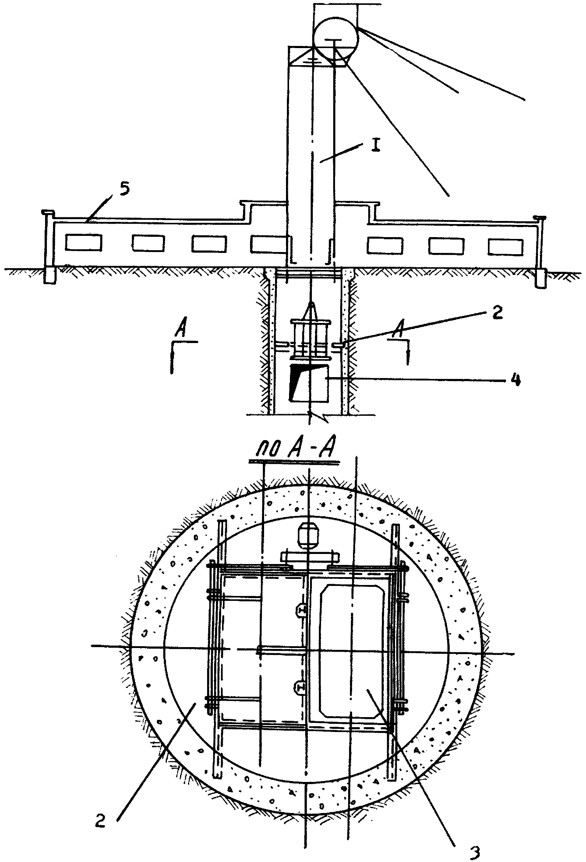 и породы; 4 - шлюзовые помещения; 5 - надшахтное здание