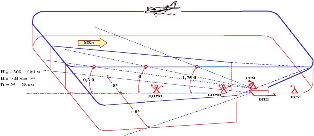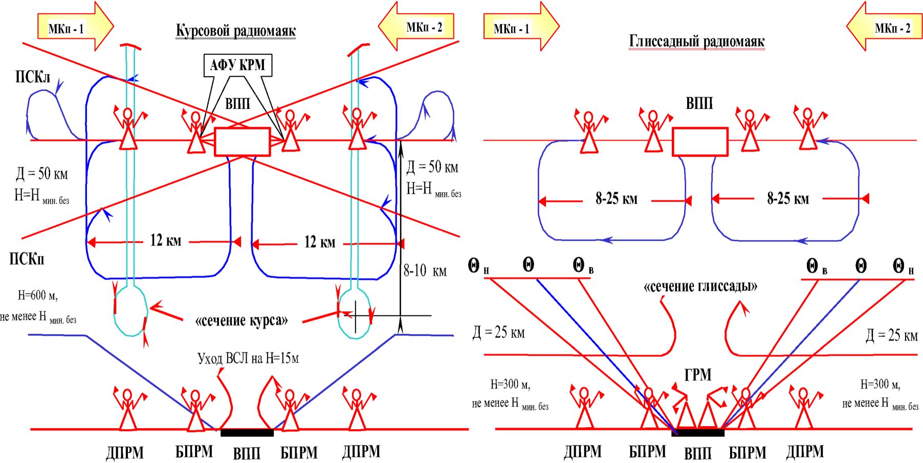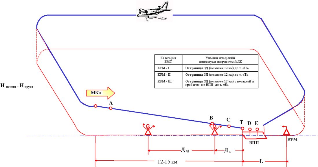 При измерении параметров и характеристик РМС маневрирование ВСЛ осуществляется по стандартной схеме захода на посадку на данном аэродроме.