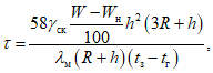 Приведенной формулой можно пользоваться при условии, если весовая влажность мерзлого грунта превышает следующие значения в %: для гравийно-галечниковых грунтов - 5; песков - 15; песчано-суглинистых грунтов - 20; полускальных песчаников и известняков - 2; доломито-мергелистых, разрушенных до щебенисто-глинистого состояния, - 10.