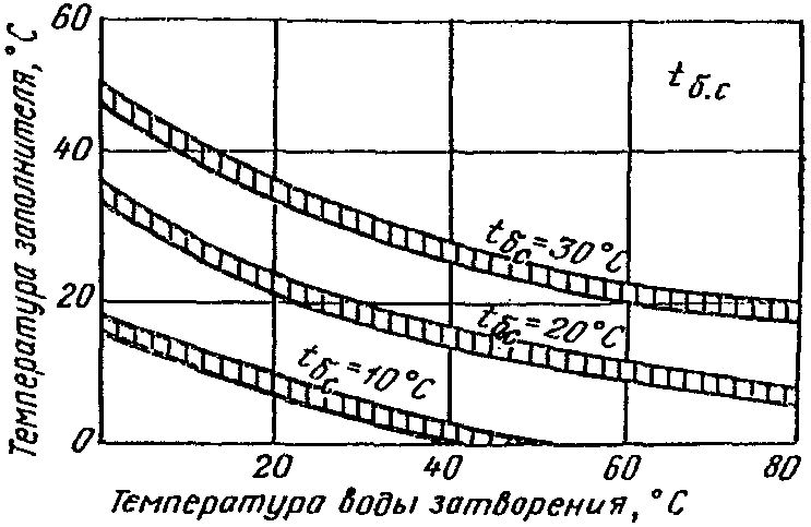 с температурой до tб.с = 35 °C и tб.н = 25 - 30 °C | предварительно разогретой до tб.с = 70 °C при tб.н = 50 °C |