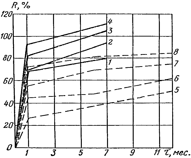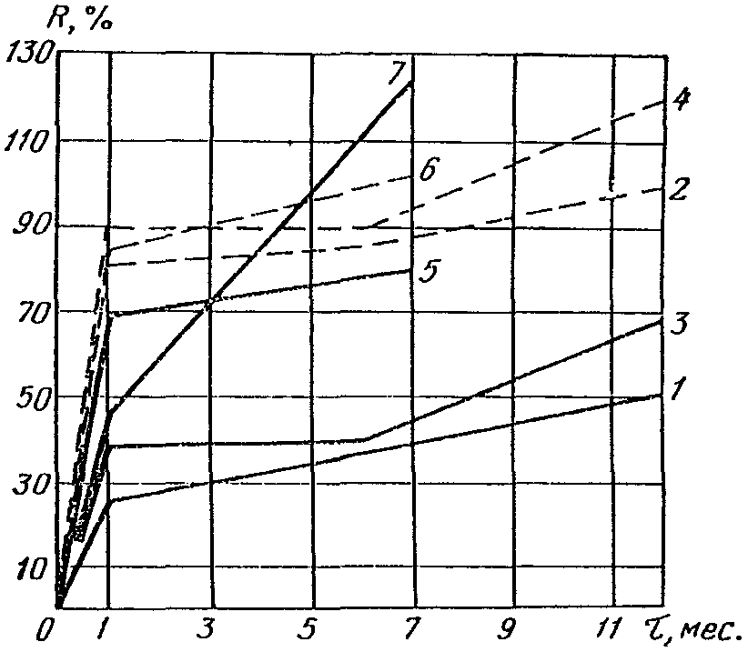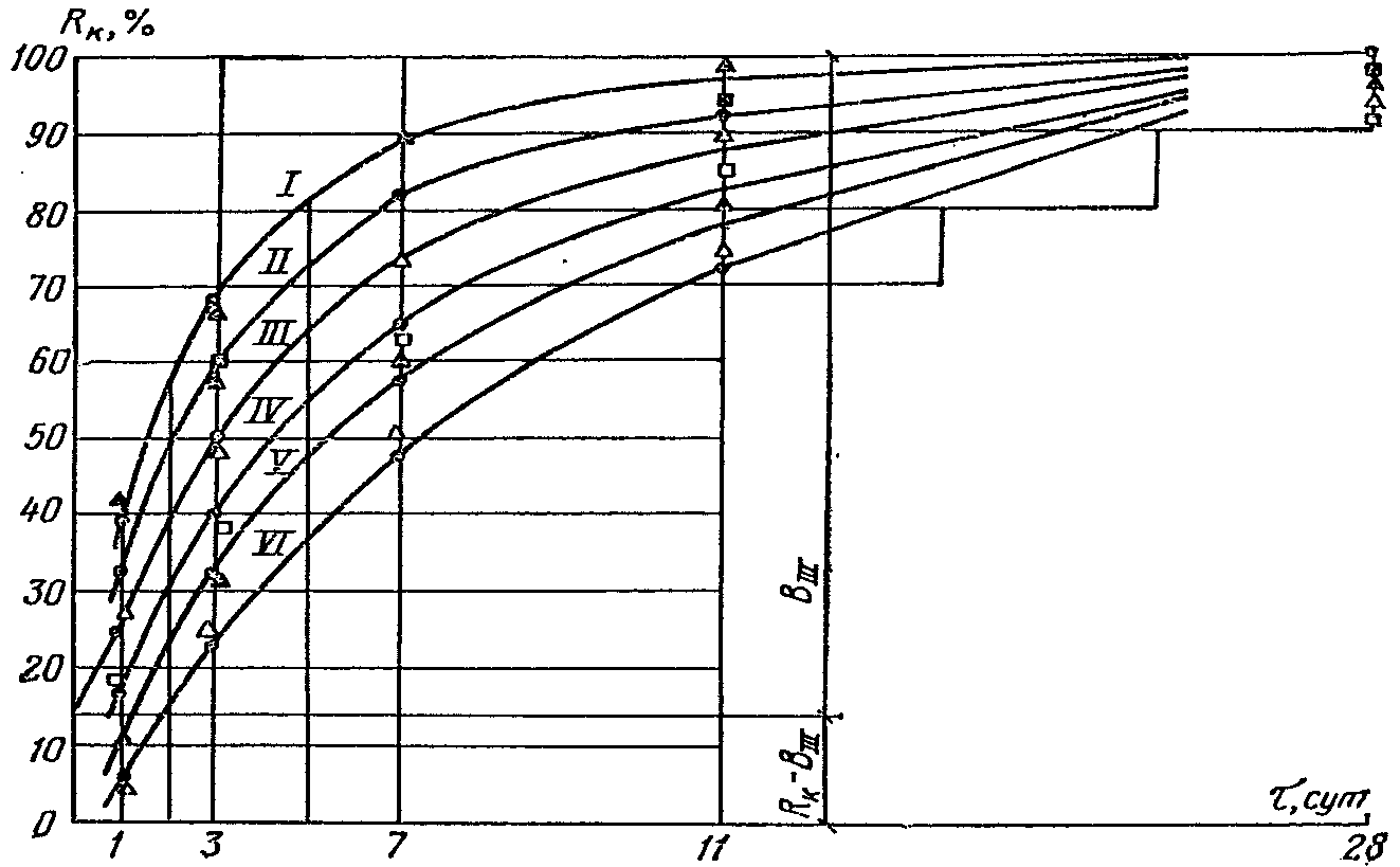 а) для бетонных и железобетонных конструкций с ненапрягаемой арматурой - 50% проектной прочности при марке бетона до 150, 40% для бетона марок 200 и 300 и 30% для бетона марок 400 и 500;