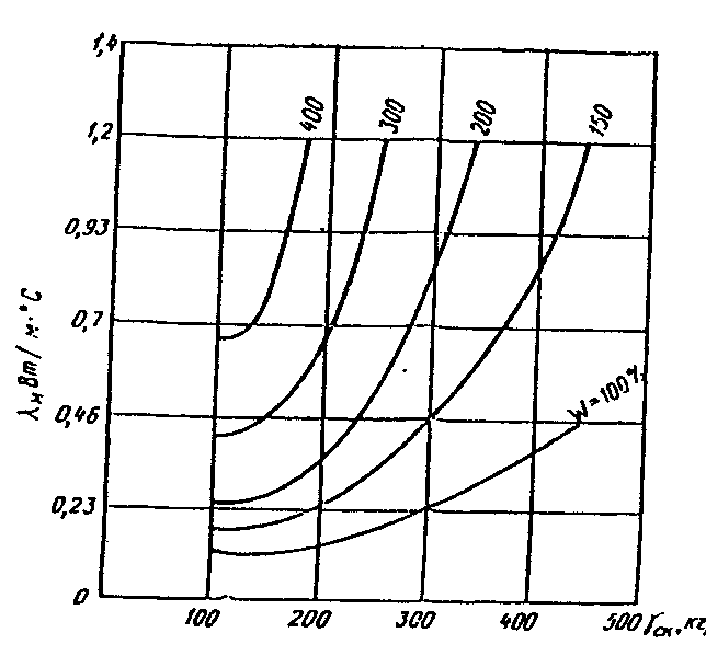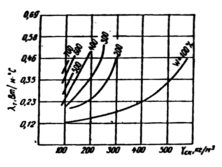 теплопроводности талого торфа при влажности W от 100 до 700%