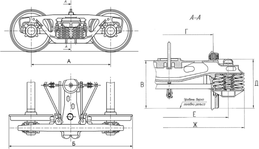 ТЕЛЕЖКИ ДВУХОСНЫЕ ТРЕХЭЛЕМЕНТНЫЕ ГРУЗОВЫХ ВАГОНОВ С БОКОВЫМИ