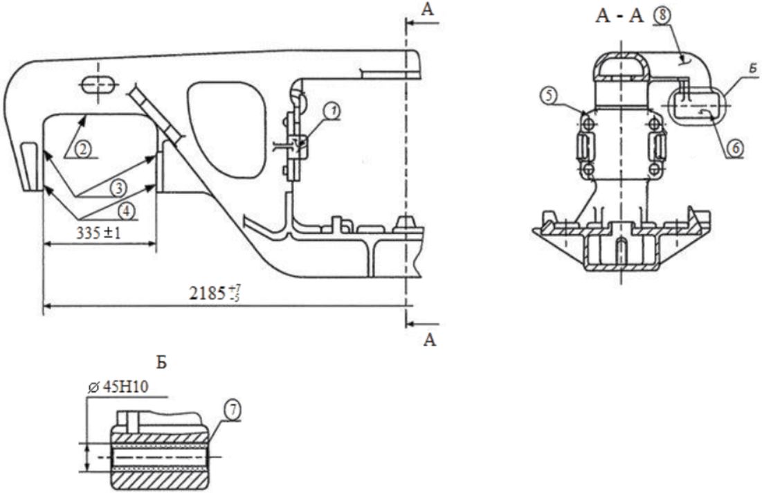 Отверстие в державке кронштейна мертвой точки поз. 13 | Износ | Измерение | Штангенциркуль | Диаметр более 23+0,52 | Ремонт наплавкой | Визуальный осмотр, измерение |