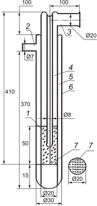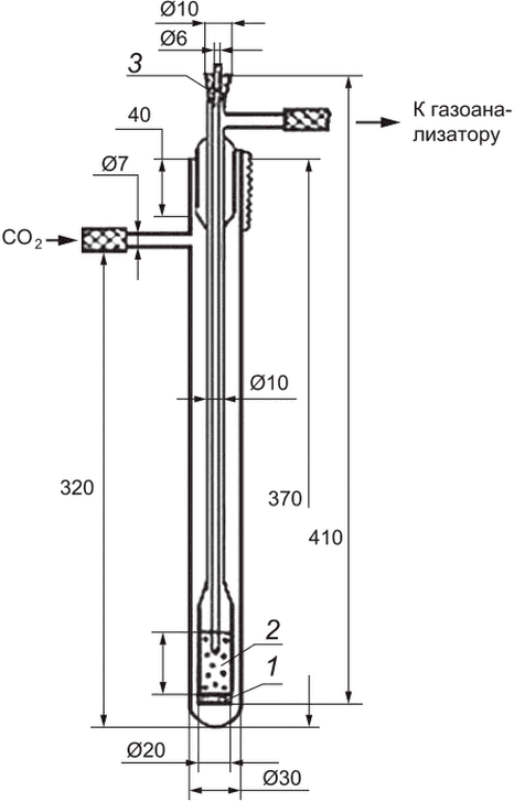 1 - проба кокса; 2 - штуцер чехла; 3 - штуцер реакционной
