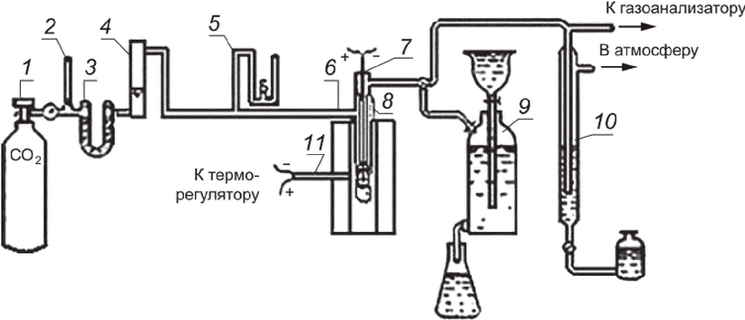 Скорость подачи реагента CO2 при температуре 20 °C - 3 см3/с.