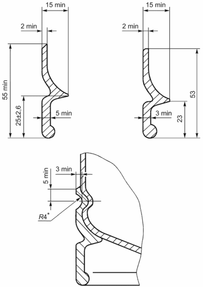 7.3 Размеры корпусов фляг, крышек и уплотняющих колец контролируют универсальными средствами измерений или шаблонами, обеспечивающими контроль с погрешностью, не превышающей установленную в